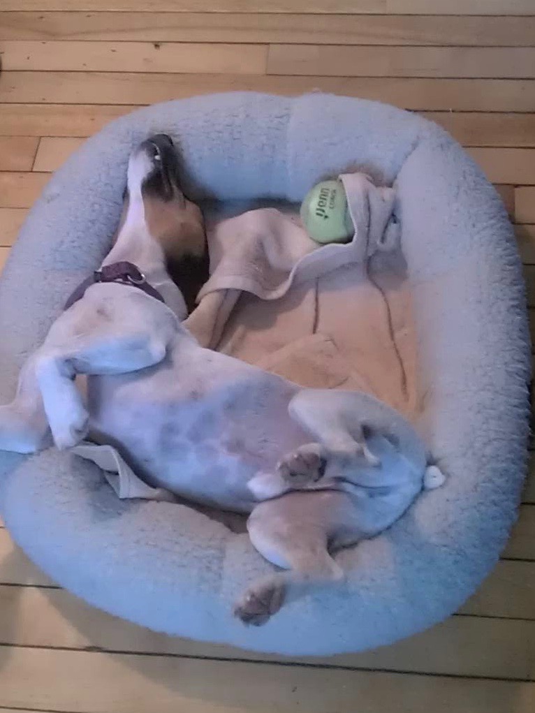 Oh my dog!!! I mean…well you both know what I mean. Zenitude indeed. I think, after the March we’ve had, a little Savasana is called for. Leave it to Rudy to show us the way. (Those big brown eyes could melt all four feet of snow we’ve had so far!!!) Thanks for sharing the peace. 😇 xoxox