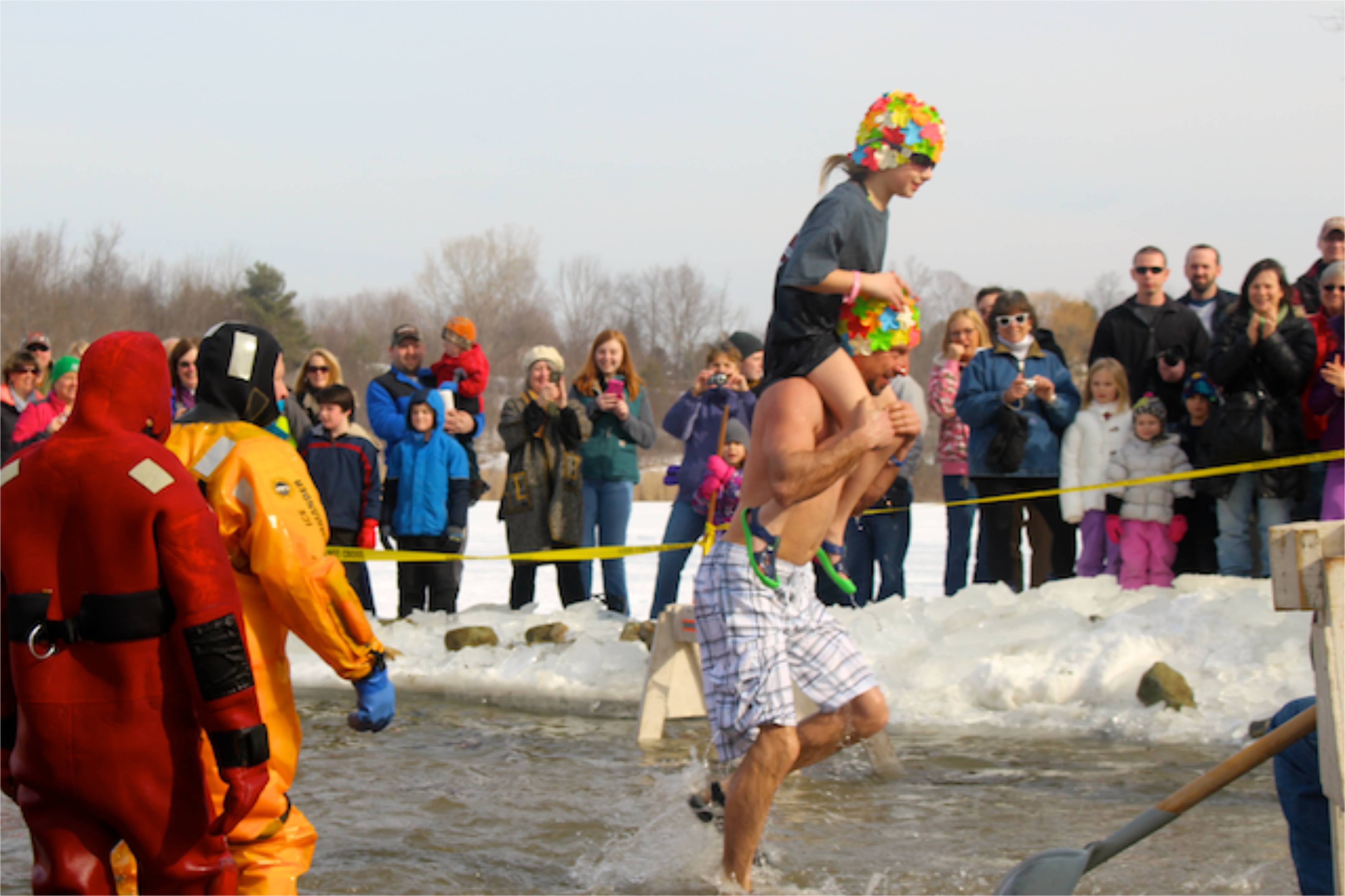 Teams of screaming, grunting, stoic locals were diving, dunking, or standing stock still in shock as bare skin met ice water. Teams with names like Ice Choppers and Team Lingerie.